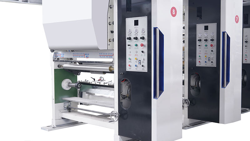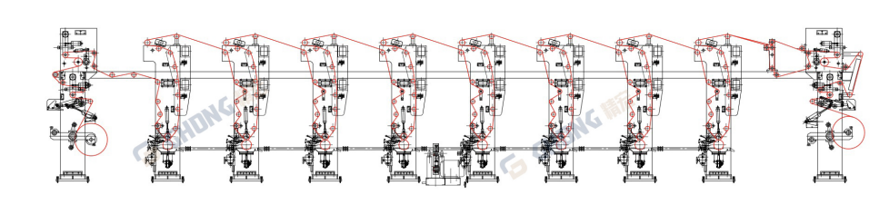 This machine is used for printing roll-type materials such as BOPP, PE, PET, PVC, and papers etc. with its advanced seven motors tension-controlling system, the processes such as dynamic synchronization of system tension and zero speed-difference automatic roll-changing are controlled and completed by the center PLC. Besides, parameters can be set and changed with Chinese character displayed touch-controlled man-machine interface; sealed drying case with secondary return air function are also equipped, the wind-screen type hot air drying is enabled by the unique round hole array, and automatic roll-changing work can be done in high-speed working status; the excellent rigidity and stability of the whole machine is ensured by high quality materials and high-precision processing. Moreover, the human-based design concept will also bring adequate convenience for operators.
